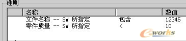 選擇的零件包括:文件名稱包含"12345",并且零件的質(zhì)量<10的零件。