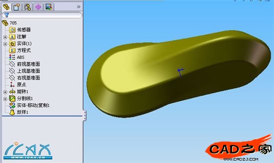 2,旋轉(zhuǎn)180度實(shí)體后作草圖分割面(寬度和草圖一灰色尺寸連接,09以前版本不可,就給個(gè)相似數(shù)吧)