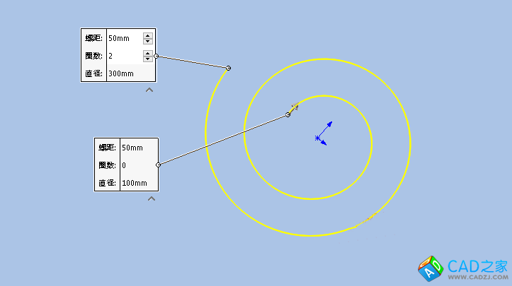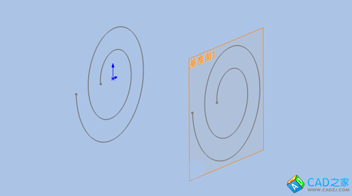 首先我們創(chuàng)建所需的渦狀曲線,然后我們需要在兩個平行的平面上形成兩個草圖, 每個草圖都是通過對原始渦狀線使用“轉(zhuǎn)換實體引用”工具創(chuàng)建的。