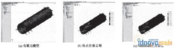 3)薄壁零件剛度分析.由于該零件壁厚很小,在受到卡爪的徑向夾緊力時,容易產(chǎn)生變形,影響加工精度;在應(yīng)力超過其材料屈服應(yīng)力時,甚至?xí)?dǎo)致零件的損壞.所以,有必要對夾緊力產(chǎn)生的零件變形進行分析.SolidWorks提供的COSMO—Sworks有限元分析模塊,可以直接使用零件三維模型,并根據(jù)分析結(jié)果修改模型,實現(xiàn)CAD和CAE的無縫接合,使得分析過程迅速、準確、有效.具體過程如圖5所示.