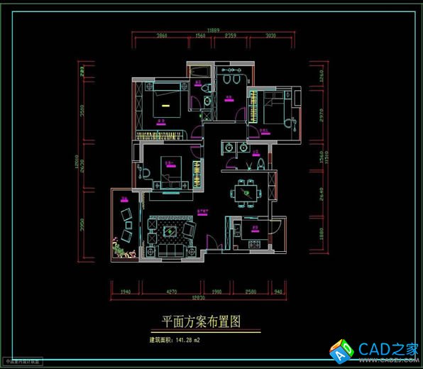 一套非常精致完整的家裝施工圖,壓縮包內附效果大圖。