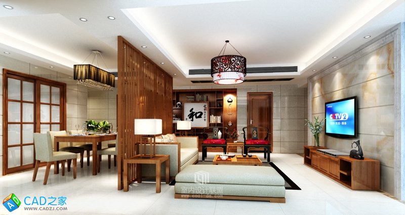 一套四室兩廳現代中式效果圖、平、立、剖全套施工圖