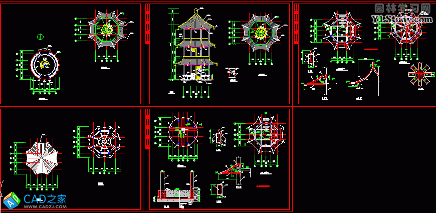 八角亭、連體結構方案-廊亭、六角亭、四角亭、歇山亭、重檐亭