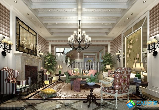 晉愉二期英倫風格別墅樣板房施工圖CAD圖紙下載