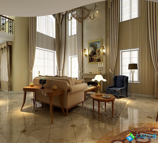 - 君臨天下簡(jiǎn)歐風(fēng)格三層別墅施工圖CA