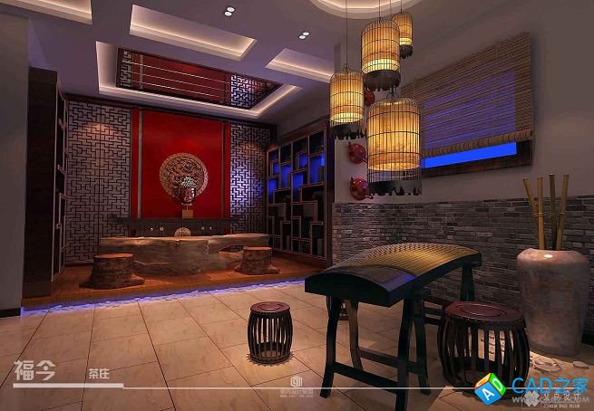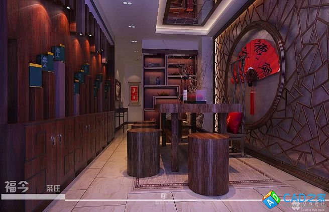 福今茶樓CAD施工設計圖+效果圖下載