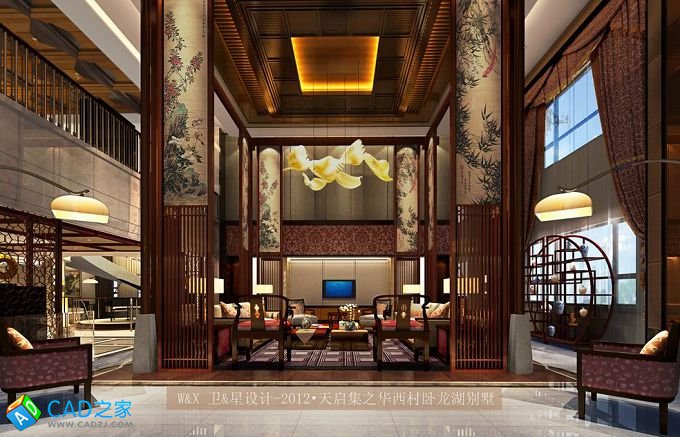 華西村臥龍湖現(xiàn)代中式別墅全套施工圖+效果圖