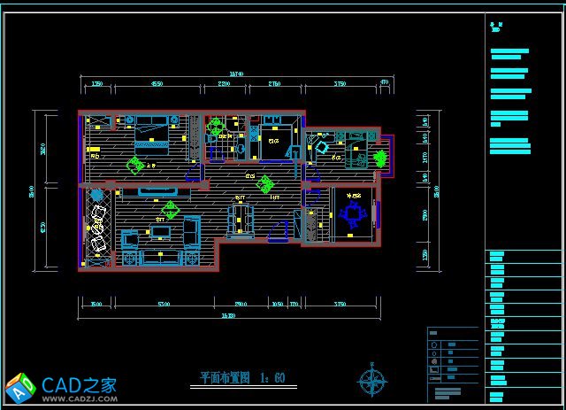 某現代風格住宅三室兩廳CAD施工圖及效果圖