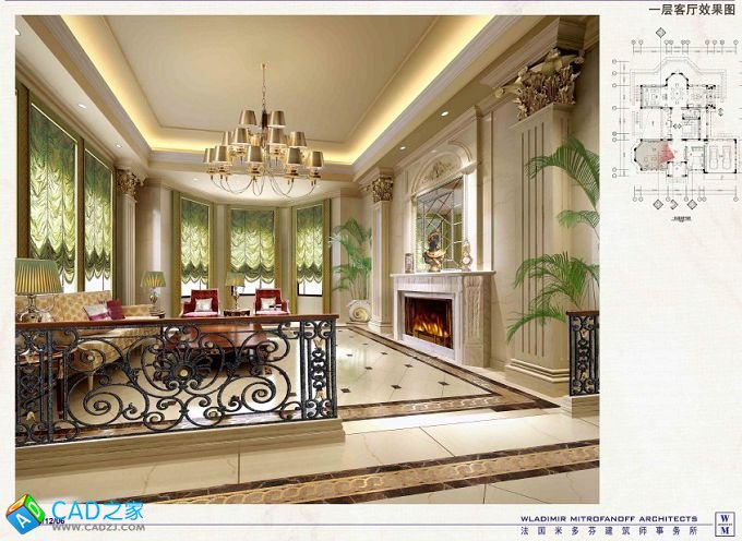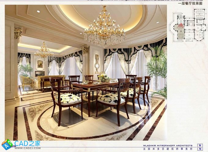 法國米多芬法式風格別墅施工圖及效果圖下載