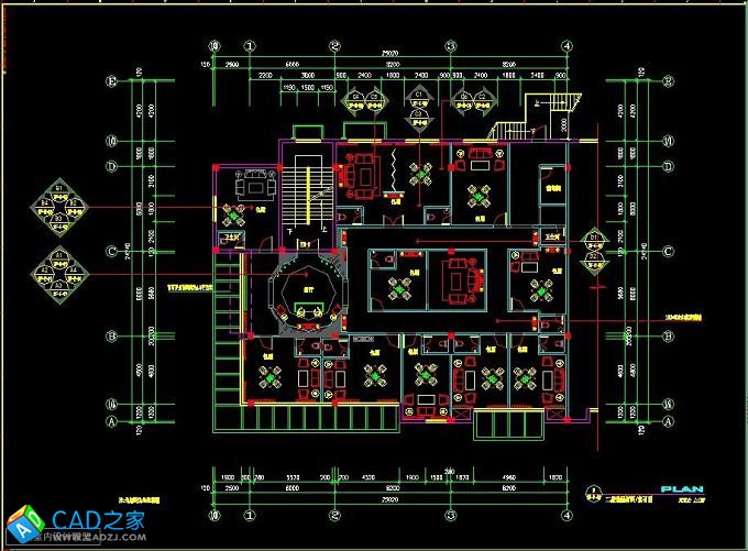 四季茗茶CAD詳細裝修施工圖+效果圖免費下載