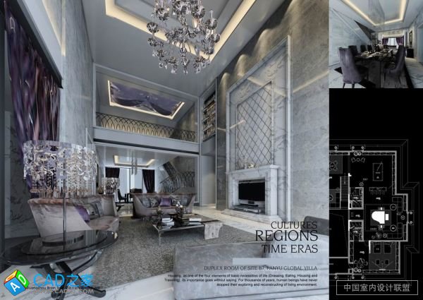 廣州某精裝復式樣板房完整CAD施工圖下載