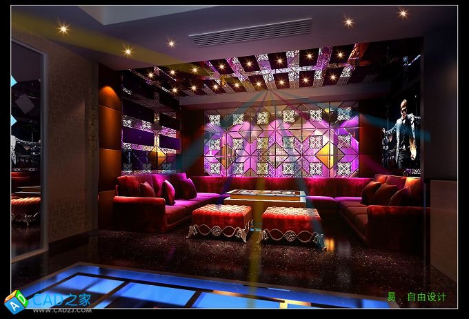 歌城定位上以簡潔明亮、健康,以青年人、中年人為主進行設計,首先考慮給人營造一個輕松的環境,讓客人到歌城來不僅僅唱歌娛樂,同時還可以在一個風格獨特的環境中得到松弛和享受,所以在裝飾裝修上采用了大面積的玻璃磨花的個性造型,也采用造型軟包,起到隔音、吸音效果,使其客人在娛樂唱歌中得到最佳的、最美的音色,局部增加鏡面玻璃,豐富色彩變化,讓空間更具寬敞性、變幻性。