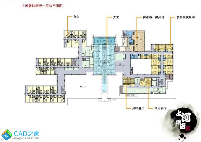 上河徽院傳統中式酒店CAD施工圖及效果圖