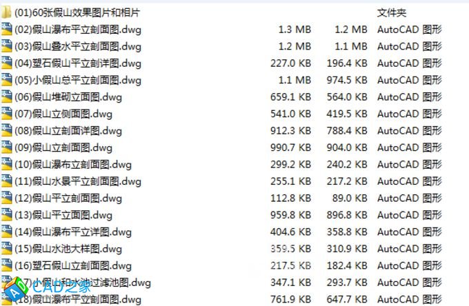 園林景觀小景人造假山瀑布CAD圖紙集下載