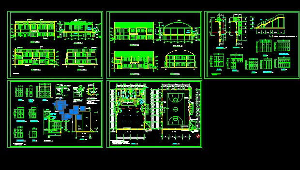 中學操場與食堂建筑施工圖包括平面圖、立面圖、剖面圖等。供大家參考!