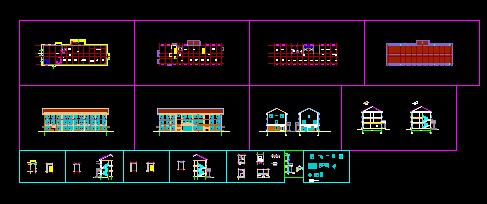坡屋頂多層綜合樓施工圖包括平面、立面、剖面、樓梯詳圖,檐口大樣圖等