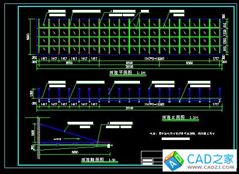 點式玻璃雨篷施工圖,包括雨篷平面圖,雨篷側面圖,供各位參考