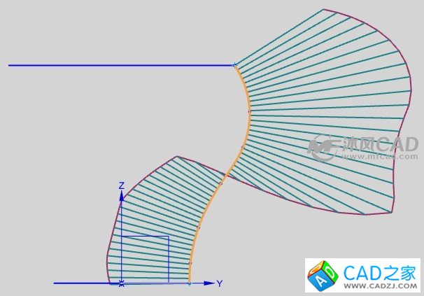 調節出的結果如圖所示,然后使用【鏡像曲線】命令將創建好的樣條曲線進行鏡像。
