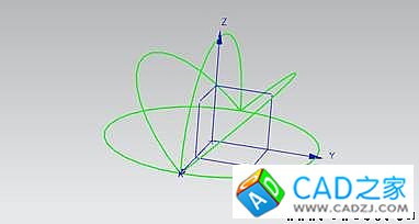 第七步、旋轉復制上步建立的三個曲面體,旋轉角度為-120°,旋轉軸通過兩點方式建立(一點為原點,一點為曲面體的邊緣點),結果如下圖所示。