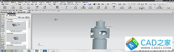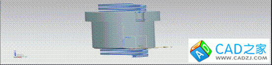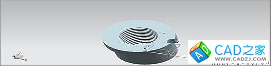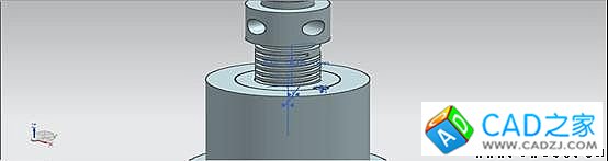 從頂部開始,繪制頂面。然后繪制五個凸臺,通過WCS構造兩個點,繪制兩個垂直相交的通孔。隱藏主體,重新定位原點。重復第五節繪制螺旋體,顯示主體,求差。