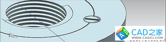 先畫圓柱,再在其上畫槽和倒斜角,繪制螺紋。