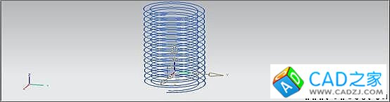 7,單擊“曲線”,點擊“螺旋線”,在對話框中輸入圈數11,螺距12,半徑32.5,旋向右旋。點擊“點構造線”,輸入WCS坐標(0,0,-20),此點作為底面圓心,單擊“確定”。返回,點擊“運用”。