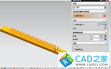 圖 5 拔模效果第三步、運用實例幾何體工具復制上幾步建立的齒條模型,距離為4.5mm,副本數為16,最終效果見下圖。