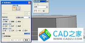 4)投影曲線。啟用投影工具,在“投影曲線”對話框中默認所有設置,按照步驟,單擊底面前邊緣線,中鍵確認后再單擊基準平面1并應用,獲得頂面前邊緣線。用同樣的方法獲得頂面的后邊緣線。按組合鍵“Ctrl+B”,將基準平面1、2和底面的邊緣線隱藏掉。