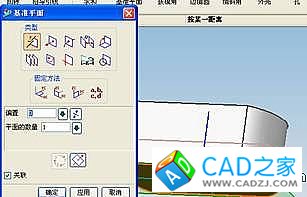 2)構建基準平面。分別構建兩個基準面,選擇模型主體的底面為參考平面,基準平面1的偏置值設置為15,基準平面2的偏置值設置為8。