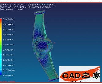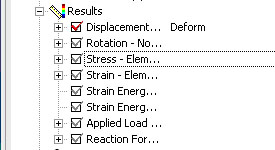 UG的CAE模塊提供較完整的后處理方式。在解算完成后,在Scenario導航器中,可以看見在Results下激活了各種解算結果,如圖5所示,選擇不同的選項,在屏幕中將出現不同的結果。