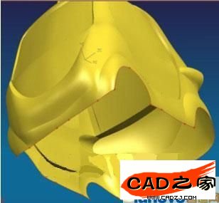 構建完外表面后,需要構建實體數字模型。如果模型較簡單且曲率變化不大時,把它們縫合成一個整體,再使用增厚指令就可建立實體,但在大多數情況下卻不可能實現,對本文中的模型更是如此。
