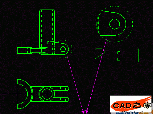 1. 在主視圖上, 用"EditàObject Display" 選中虛圓, 將Line Font改為"Thin"