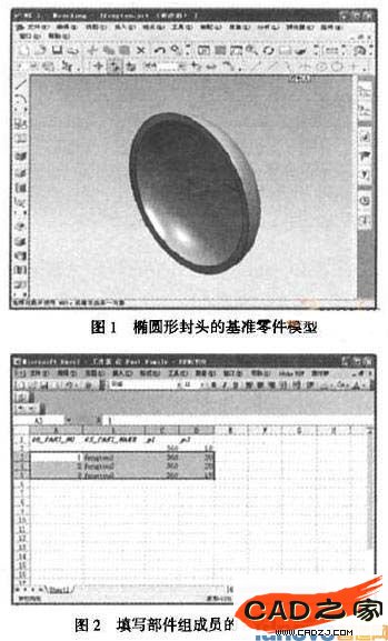 一臺(tái)換熱設(shè)備無論其具有何種功能,它通常是由圓筒、封頭、接管、法蘭和支座等組成。因此,各種換熱設(shè)備在結(jié)構(gòu)上都具有一定的相似性。而參數(shù)化設(shè)計(jì)就是將結(jié)構(gòu)形狀比較固定的零件用一組參數(shù)的尺寸關(guān)系來表示,進(jìn)行零件的變異設(shè)計(jì)時(shí),只需修改相應(yīng)的參數(shù)即可完成。UG軟件具有強(qiáng)大的參數(shù)化建模功能。對(duì)于換熱設(shè)備中標(biāo)準(zhǔn)件設(shè)計(jì),如圓筒、封頭、法蘭、支座等,提取出特征參數(shù)和主要尺寸參數(shù),便可以用UG進(jìn)行參數(shù)化設(shè)計(jì)。UG中部件族的功能就是用于建立一系列結(jié)構(gòu)相同而部分參數(shù)不同的部件。部件族的功能特點(diǎn)是在一個(gè)部件的基礎(chǔ)上,通過電子表格設(shè)置各個(gè)部件的參數(shù),然后利用電子表格設(shè)置的參數(shù)快速生成一系列部件,而不必逐個(gè)建立各個(gè)部件,從而大大提高了建模效率。根據(jù)其特點(diǎn),其特別適用于標(biāo)準(zhǔn)件和常用件等部件的建立。如在圖1所示橢回形封頭的基礎(chǔ)上,按照?qǐng)D2所示填寫部件組成員的名稱和參數(shù),添加所需部件,從而完成相同結(jié)構(gòu)不同參數(shù)的封頭設(shè)計(jì)。