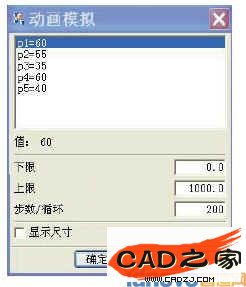 點擊草圖工具約束中的動畫模擬尺寸按扭,出現動畫模擬對話框(如圖2所示)。