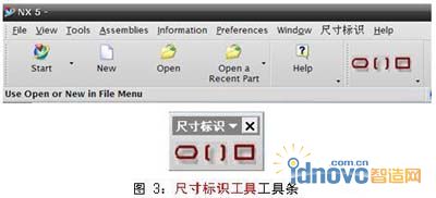運行UG NX后在主界面上生成的尺寸標識工具的工具條如圖3所示: