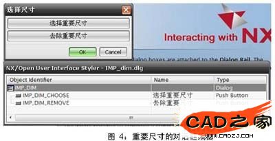 2)、利用UIStyler提供的控件分別創建重要尺寸,參考尺寸和基本尺寸的對話框,設置成添加和去除尺寸標識按鈕,圖4所示為重要尺寸的對話框: