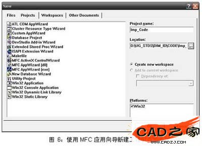 2.5.1 在Visual C 中使用MFC應用向導新建工程項目Imp_Code.dsw,如圖6所示;