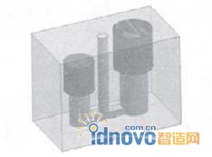 最后添加冒口,實現冒口的定位。定位分自動和手動兩種。對環形孤立液相區和部分較復雜的情況,要采用手動放置,而一般情況下,可實現自動定位。自動定位時,從孤立液相區重心坐標點沿Z軸正向畫一條直線,與鑄件實體表面的第一個交點即為冒口定位點。以定位點為中心,建立冒口的三維幾何模型。圖3顯示的是在孤立液相區上方自動添加冒口。#p#分頁標題#e#
