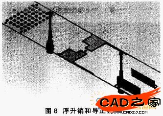 2.2.13創(chuàng)建導(dǎo)正銷:用于自動送料的級進模定位。條料是利用裝在模具上送料器來完成自動送料的,它能調(diào)整模具的任意步距(本級進模步距設(shè)置為160mm),條料位置的導(dǎo)正,是通過浮升銷的定向和導(dǎo)正銷插入條料上的導(dǎo)正孔精確定位來完成的。導(dǎo)正孔在條料的第一工位沖出,導(dǎo)正銷的位置在第二、四工位,并采用單排導(dǎo)正,共2個。浮升銷、導(dǎo)正銷如圖8。