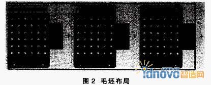 2.2.4 毛坯布局:即排樣,它直接關(guān)系到成本、材料利用率以及模架結(jié)構(gòu)合理性等方面,螺距為160mm,寬度為160ram。如圖2。
