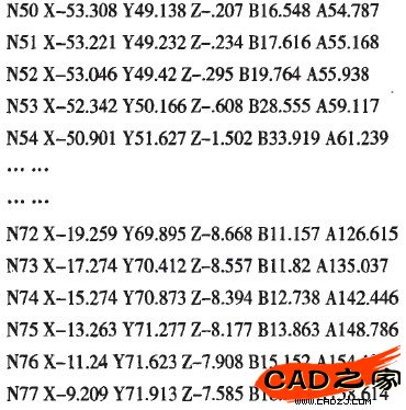 下面是本例利用UG后處理器程序處理的中性文件生成的部分加工代碼: